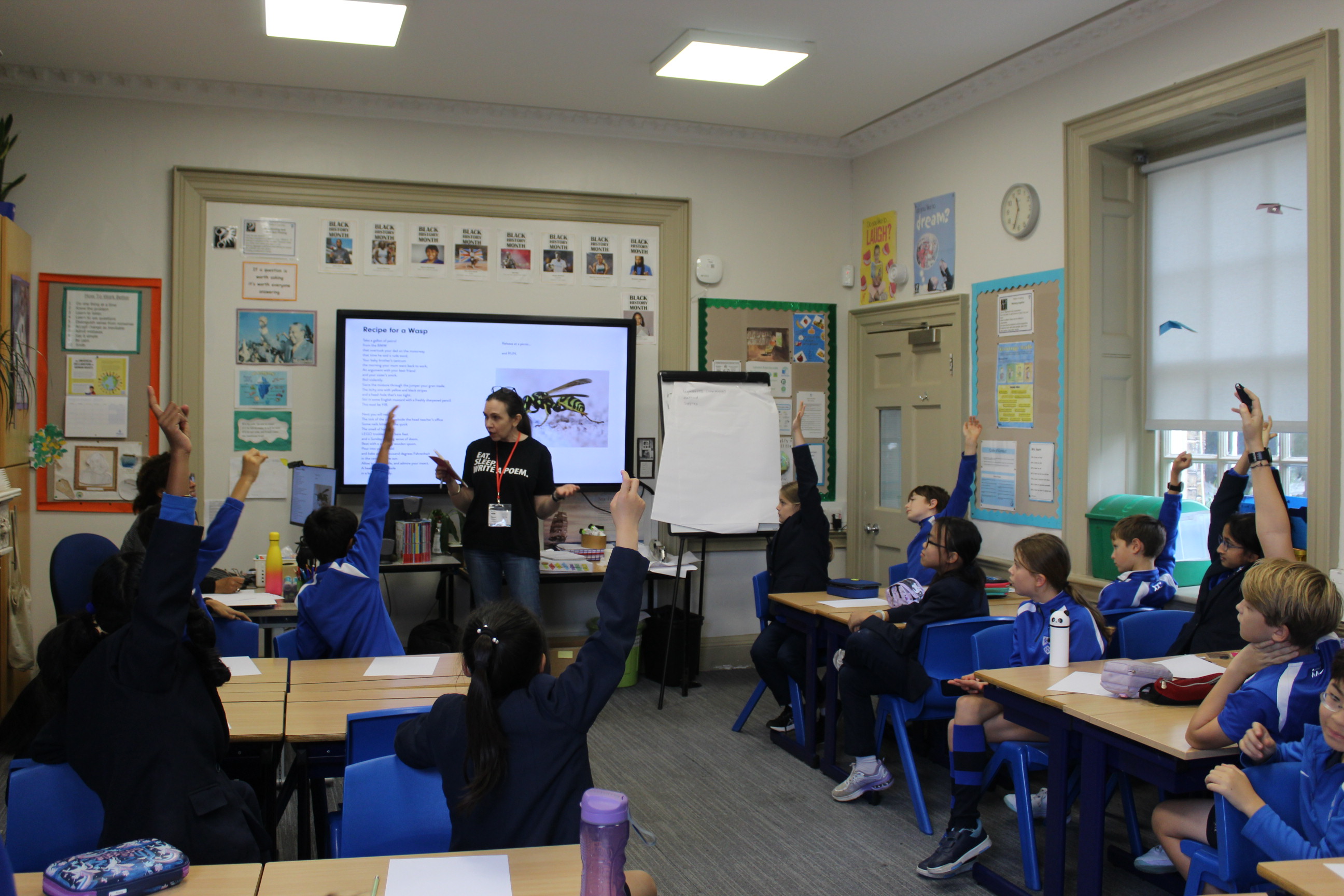 Later in the day, Sarah led poetry workshops for Year 6, guiding pupils through fun, creative activities to inspire their own writing. The sessions gave children the chance to explore poetry in new and imaginative ways, building confidence to experiment with words and ideas.